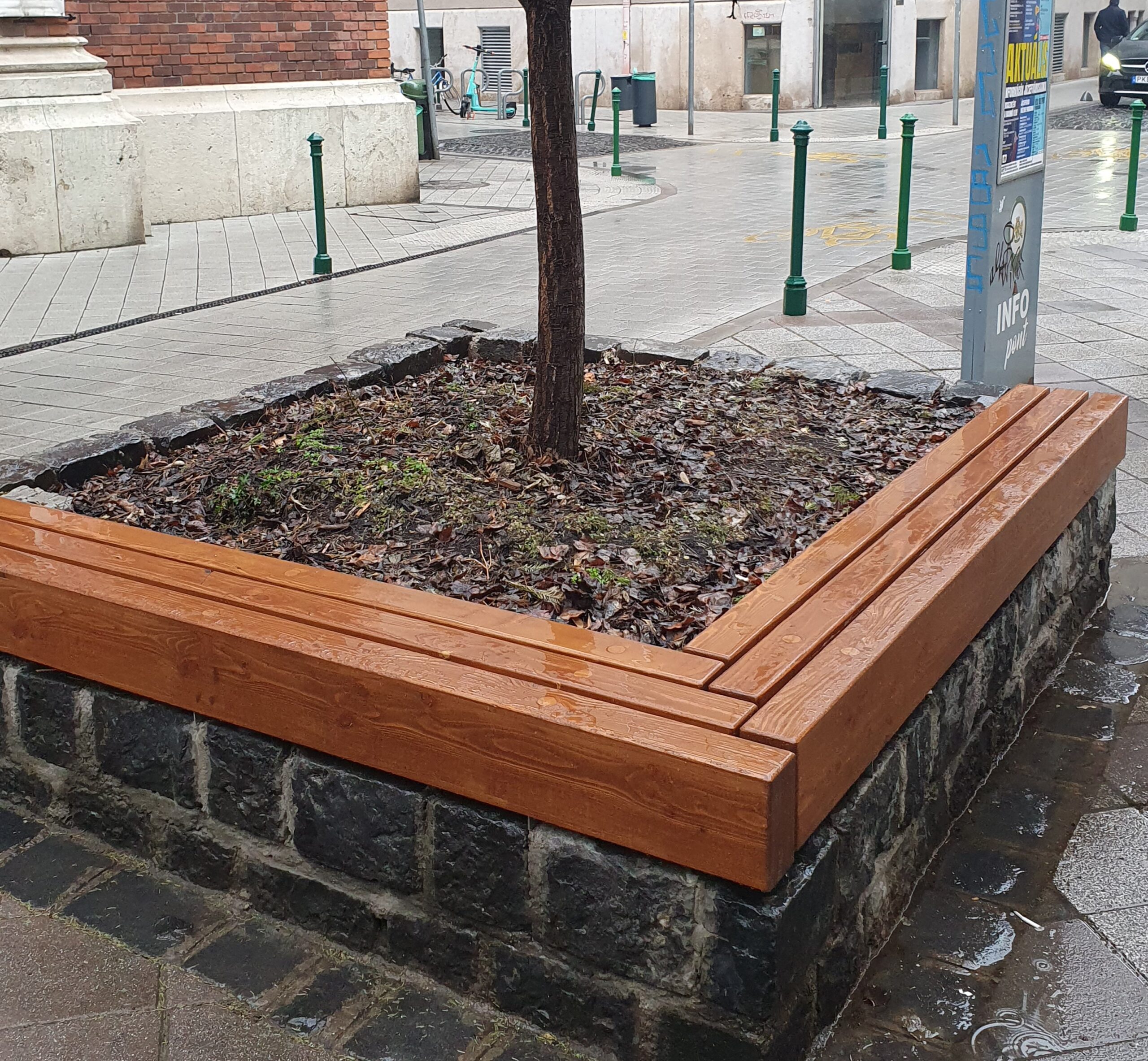 A munkálatok során az ágyásokat megerősítették, felújították, és egy kényelmes, fából készült ülőfelülettel is ellátták. Ennek köszönhetően a köztéren nemcsak a vendéglátóhelyek teraszain, hanem ezeken a magaságyásokon is lehet majd pihenni.