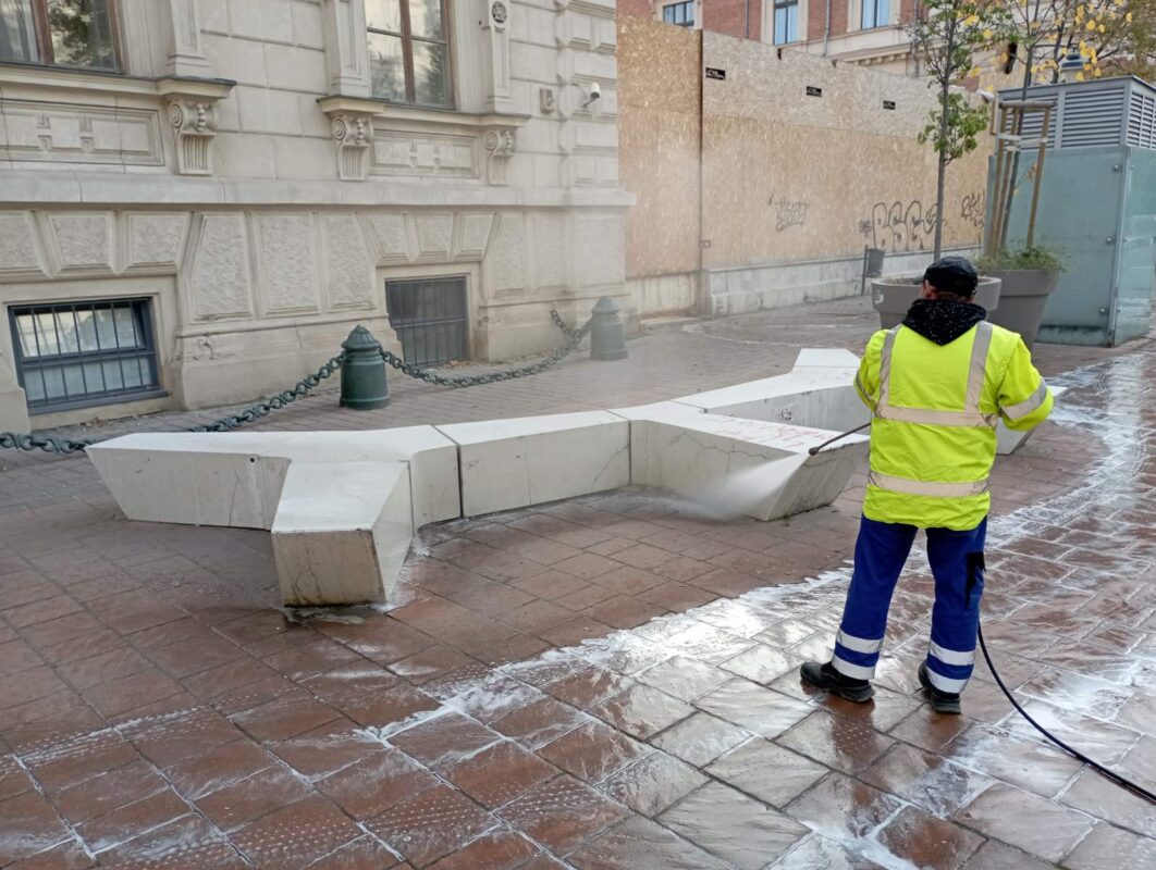 A Józsefvárosi Gazdálkodási Központ (JGK) munkatársai átfogó takarítással és fertőtlenítéssel tették tisztábbá Józsefváros köztereit.