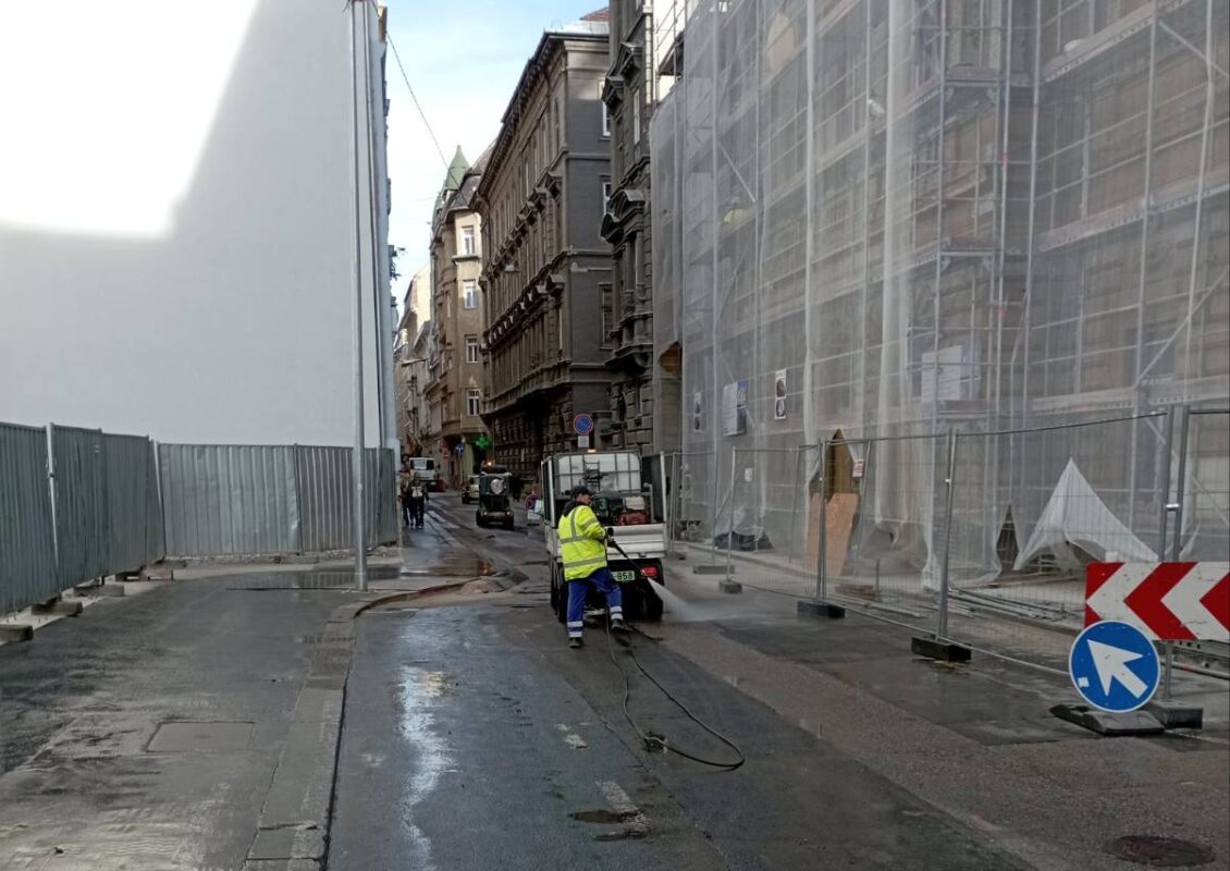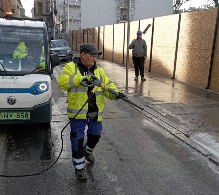Koncentrált és szervezett takarítás és faltól-falig mosás zajlott a Szentkirályi utcában, a Múzeum utcában, a Bródy Sándor utcában és a Pollack Mihály téren, valamint gondoskodtak a Szenes Iván téren kihelyezett 4 darab mobil illemhely nyitásáról és zárásáról.