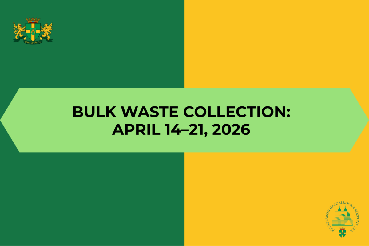 In April 2026, Józsefváros will hold its annual bulk waste collection. Waste may only be placed out on the day before your district’s designated collection day. Allowed items: Furniture, mattresses, carpets, large sports equipment, wooden crates. Prohibited items: Daily household (kitchen) waste, textiles, construction debris, tires, green waste, electronic devices, and any hazardous materials. Please place items in a location easily accessible to collection vehicles without obstructing pedestrian or vehicular traffic. Placing waste on roadways, bike paths, or green areas (parks, flower beds) is strictly prohibited and may result in a fine.