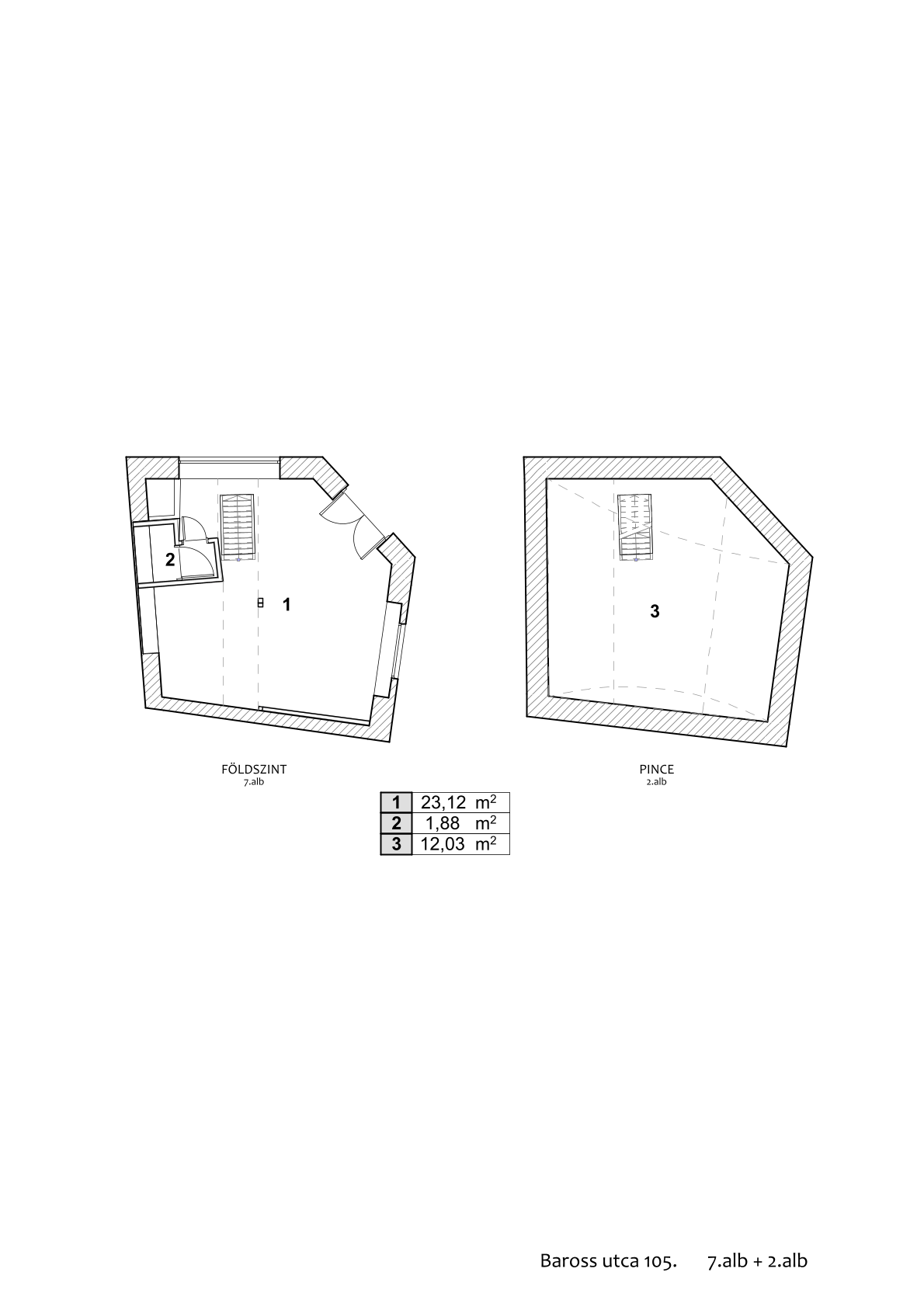 – pinceszinti része: 12 m²