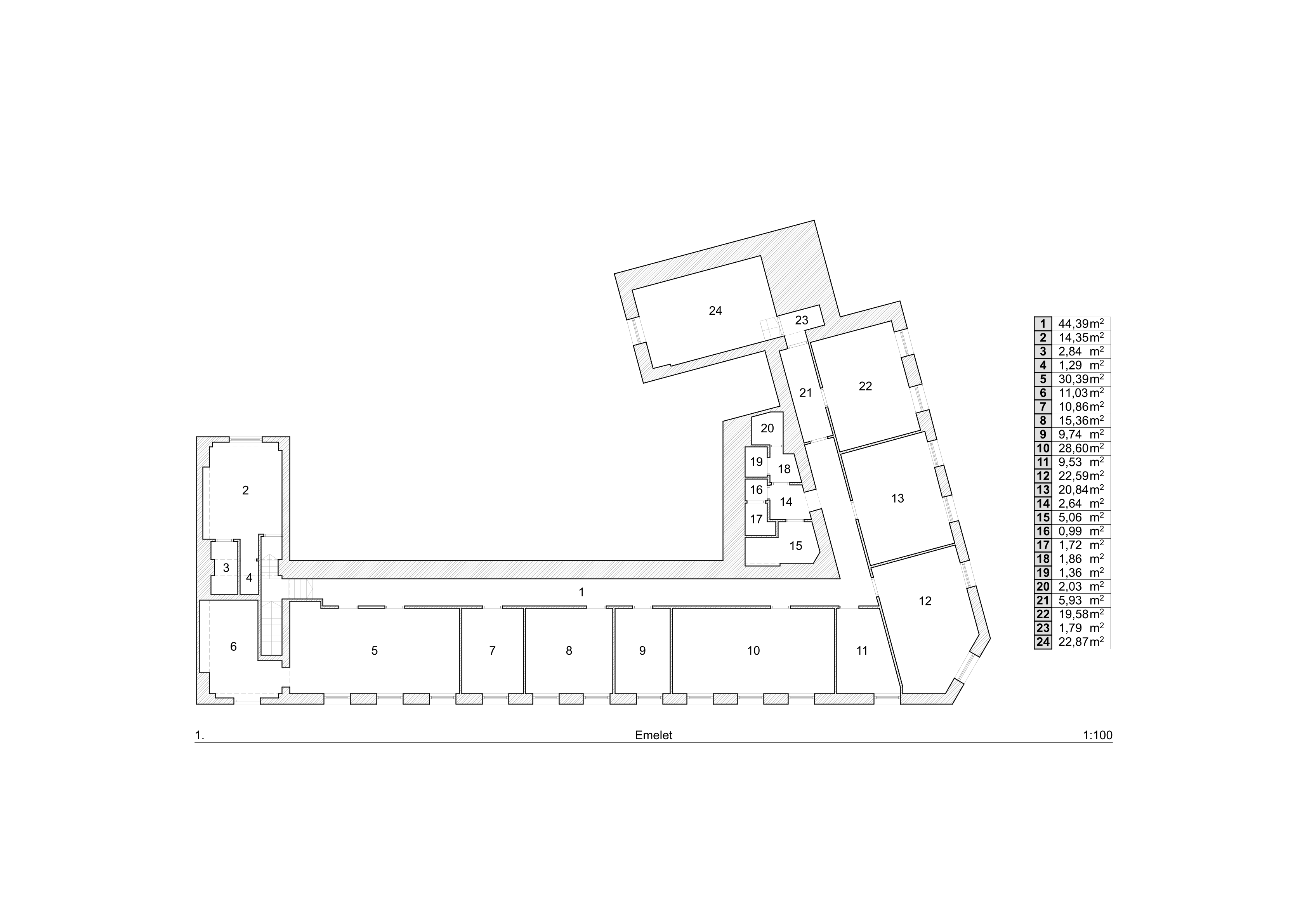 – emeleti része: 287 m