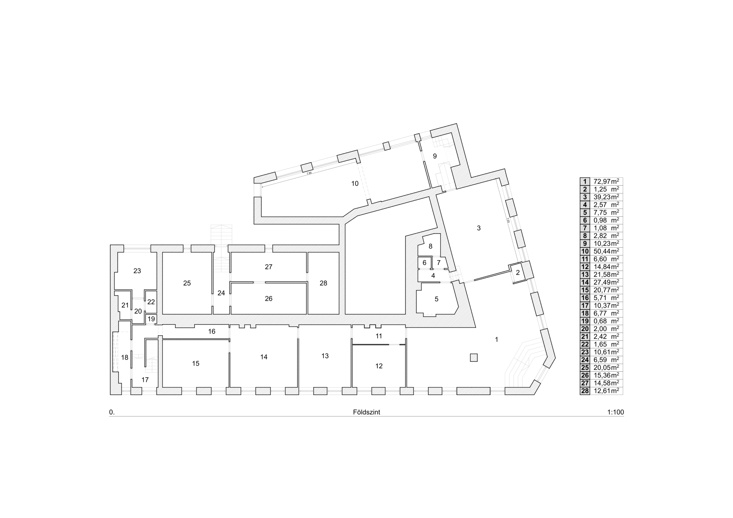 – félszuterén része: 370 m²