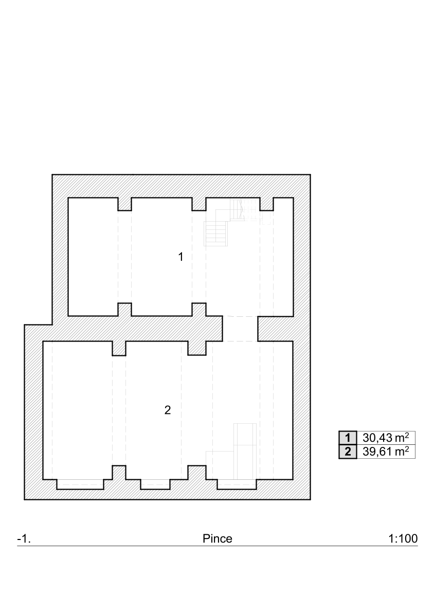 – pincei része: 70 m²